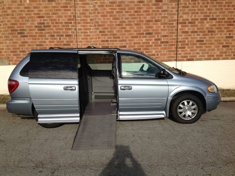 2005 Chrysler Town &Country Touring, BraunAbility Entervan II power fold out conversion, carpet flooring, 6-way power transfer seat in the driver position, leather seats, power front seats, CD player, cruise control, power sliding doors, power steering, power windows, AM/FM radio. Disability Equipped, Handicap Accessible, Wheelchair accessible, Handicap van, Wheelchair van, Handicap vans, Wheelchair vans