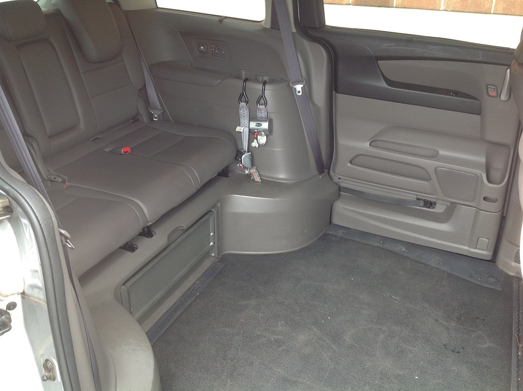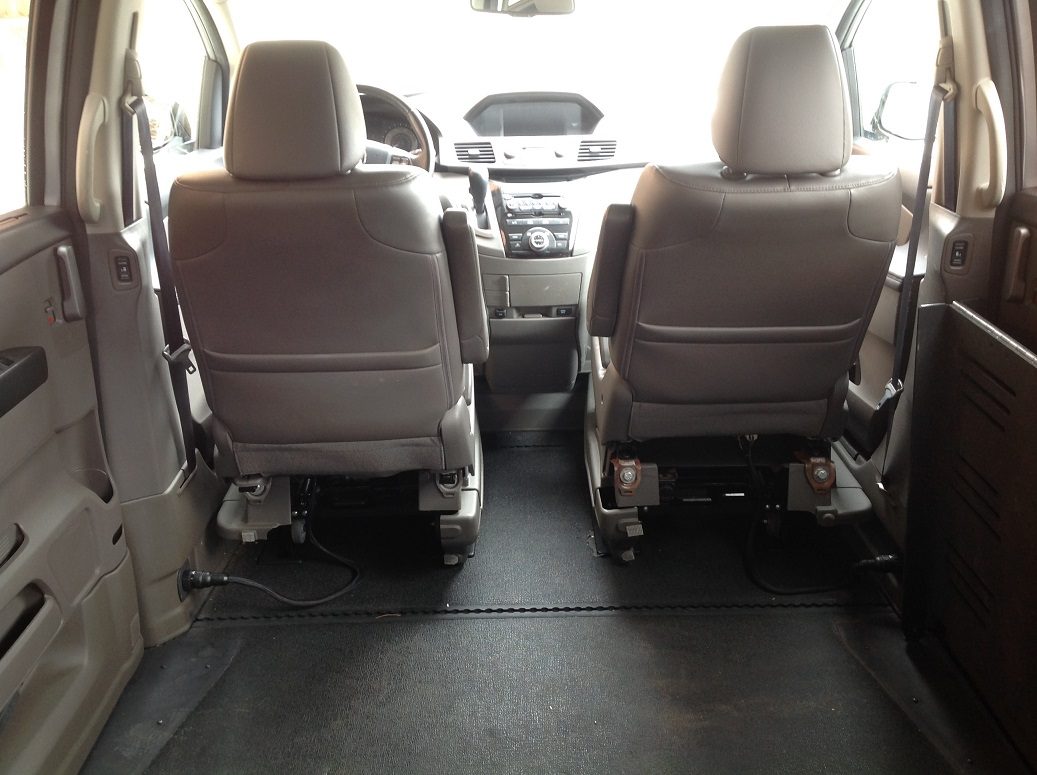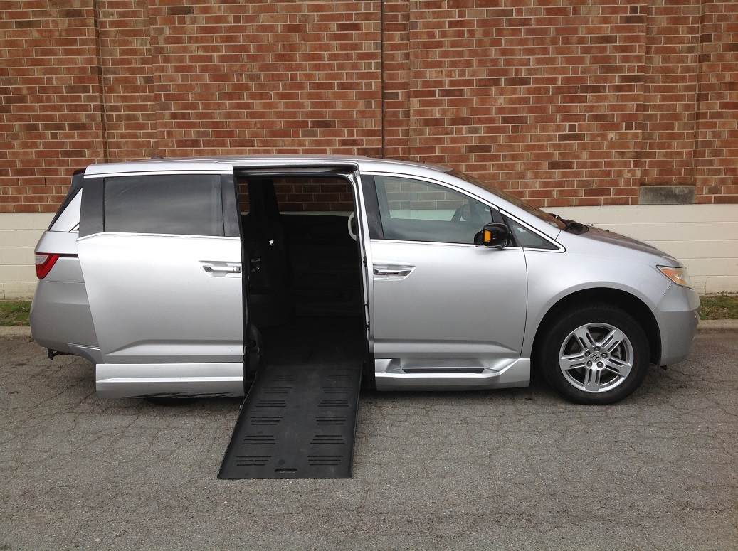 2013 Honda Odyssey Touring, Braun Entervan power fold out conversion, rubber flooring, leather seats, heated front seats, power windows, power locks, power sliding doors, power liftgate, power driver seat, AM/FM/stereo, CD player, DVD player, power moonroof, back up camera, NAV. Disability Equipped, Handicap Accessible, Wheelchair accessible, Handicap van, Wheelchair van, Handicap vans, Wheelchair vans