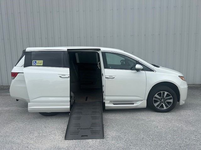 2014 Honda Odyssey Touring Elite, BraunAbility Entervan power fold out conversion, rubber non-skid flooring, power sliding doors, power windows, power liftgate, leather seats, power front seats, push button start, heated front seats, cruise control, AM/FM radio, CD player, DVD player, NAV. Disability Equipped, Handicap Accessible, Wheelchair accessible, Handicap van, Wheelchair van, Handicap vans, Wheelchair vans