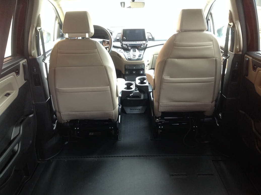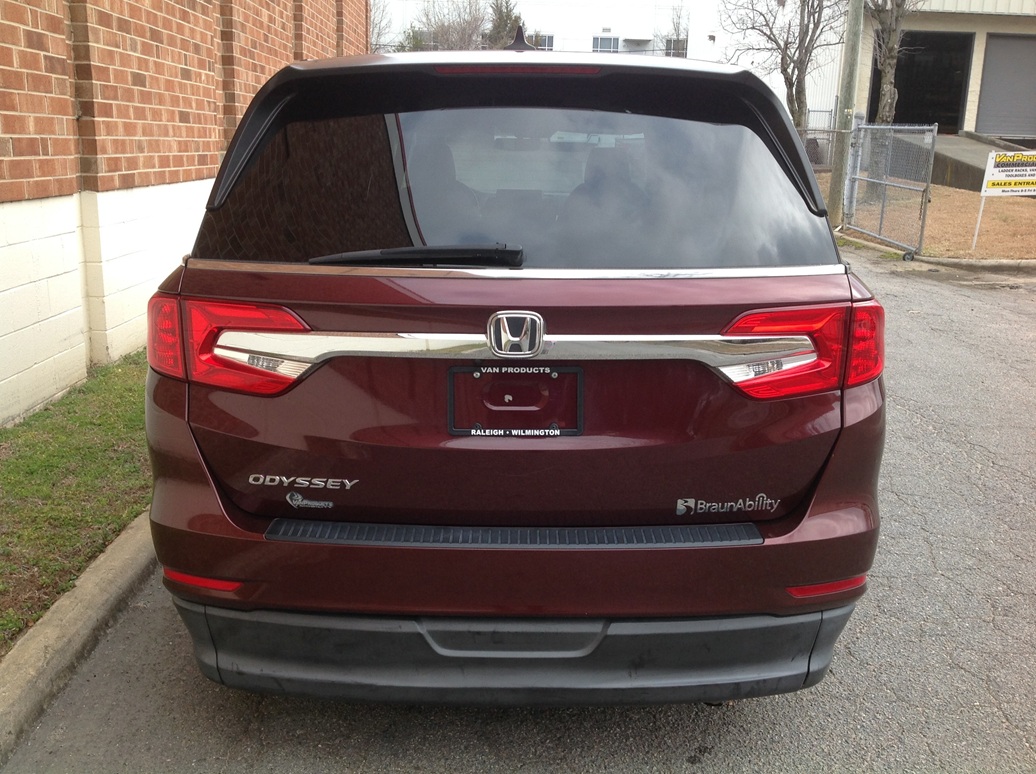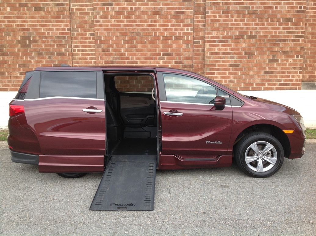 2019 Honda Odyssey EX-L NAV & RES, BraunAbility Entervan Xi in-floor conversion, intelligent traction management, electric power steering, tire pressure monitoring system, LATCH child seat anchor system, leather seats, leather wrapped steering wheel, audio system with 7 speakers, display audio with Honda NAV, voice recognition, multi-view rear camera, Blu-ray/DVD rear entertainment system with wireless headphones, Apple car play/Android auto integration, SiriusXM satellite radio, HondaLink with smart phone integration, Bluetooth HandsFreeLink, USB audio interface, push button start, 12 way power driver seat, heated front seats, HomeLink system, power sliding doors, power locks, power windows, Blind spot information system with cross traffic monitor, power moonroof, power tailgate, heated power door mirrors, smart entry system, remote engine start, walk away auto lock, adaptive cruise control, collision mitigation braking system, forward collision warning, lane departure warning, lane keeping assist system, road departure mitigation.  Disability Equipped, Handicap Accessible, Wheelchair accessible, Handicap van, Wheelchair van, Handicap vans, Wheelchair vans