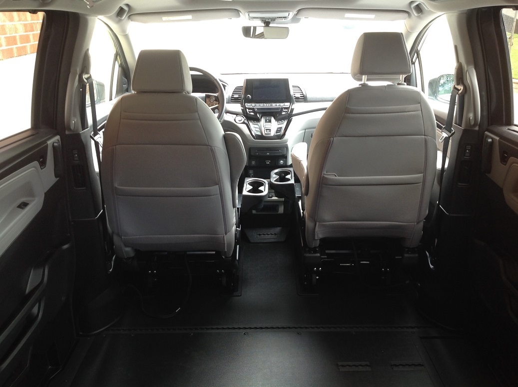 2020 Honda Odyssey Elite, BraunAbility Entervan Xi power in-floor conversion, Honda Sensing safety features, leather seats, power front seats, heated front seats, power sliding doors, power liftgate, luggage rack, cruise control, back up camera, Bluetooth phone/audio, FM/AM/Satellite radio, Apple Car Play / Android compatible, push button start, remote start, moonroof, rear entertainment system (DVD/Blu-ray player), Honda Navigation system, power parking brake, retractable tie downs with seat belts. Disability Equipped, Handicap Accessible, Wheelchair accessible, Handicap van, Wheelchair van, Handicap vans, Wheelchair vans