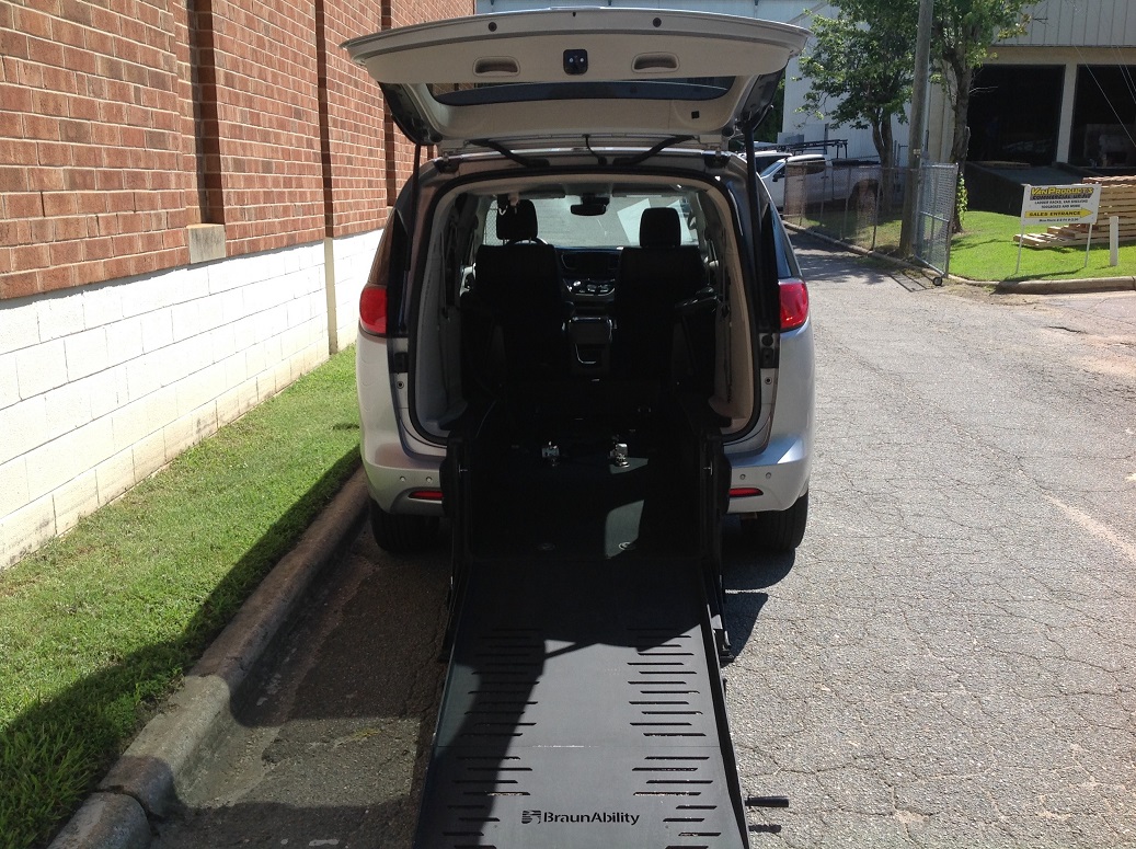 2021 Chrysler Voyager LXi, BraunAbility manual rear entry conversion, rubber flooring, leather seats, heated front seats, power sliding doors, power liftgate, AM/FM/satellite radio, Bluetooth phone/audio, back up camera, park assist, blind spot assist, cruise control, push button start, remote start, remote keyless entry, power parking brake, retractable tie downs and seat belt for wheelchair securement.  Disability Equipped, Handicap Accessible, Wheelchair accessible, Handicap van, Wheelchair van, Handicap vans, Wheelchair vans