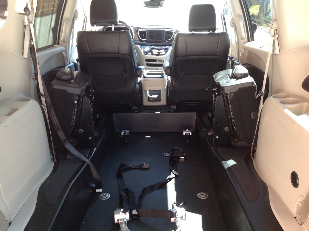 2021 Chrysler Voyager LXi, BraunAbility manual rear entry conversion, rubber flooring, leather seats, heated front seats, power sliding doors, power liftgate, AM/FM/satellite radio, Bluetooth phone/audio, back up camera, park assist, blind spot assist, cruise control, push button start, remote start, remote keyless entry, power parking brake, retractable tie downs and seat belt for wheelchair securement. Disability Equipped, Handicap Accessible, Wheelchair accessible, Handicap van, Wheelchair van, Handicap vans, Wheelchair vans