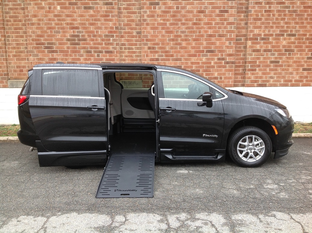 2022 Chrysler Voyager LX, BraunAbility Entervan XT power fold out conversion, premium cloth seats, rubber non-skid flooring, ParkView rear back up camera, electric parking brake, electric power steering, pedestrian emergency braking, full speed forward collision warning plus, hill start assist, push button start, remote start, Uconnect 5 with 7 inch touch screen display, Google Android auto, Apple CarPlay, USB aux ports, 8-way power driver seat, power windows, satellite radio, power liftgate, power sliding doors, heated front seats, heated steering wheel.   Disability Equipped, Handicap Accessible, Wheelchair accessible, Handicap van, Wheelchair van, Handicap vans, Wheelchair vans