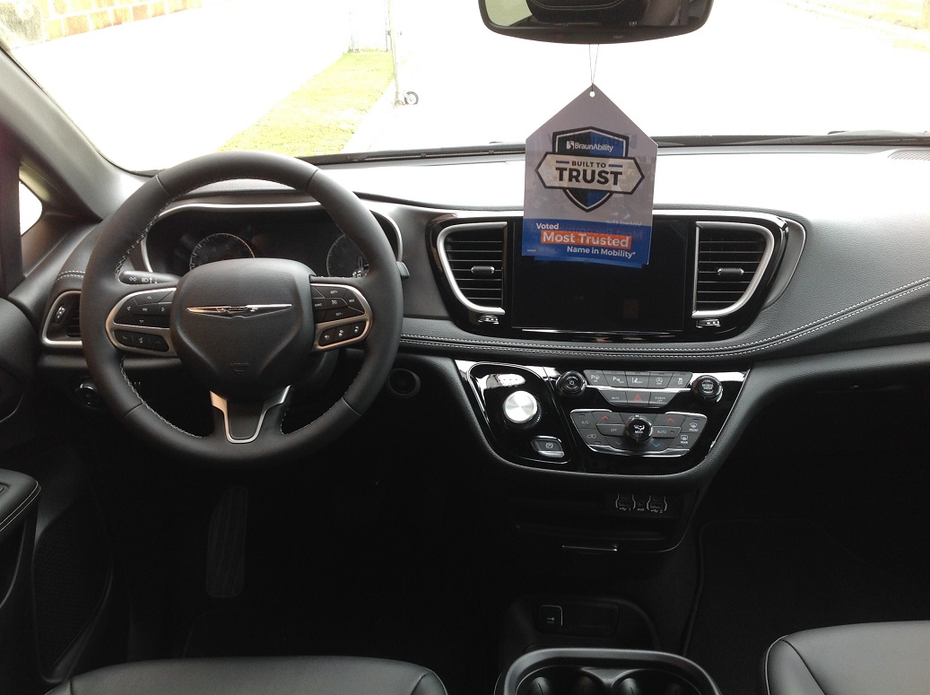 2022 Chrysler Voyager LX, BraunAbility Entervan XT power fold out conversion, premium cloth seats, rubber non-skid flooring, ParkView rear back up camera, electric parking brake, electric power steering, pedestrian emergency braking, full speed forward collision warning plus, hill start assist, push button start, remote start, Uconnect 5 with 7 inch touch screen display, Google Android auto, Apple CarPlay, USB aux ports, 8-way power driver seat, power windows, satellite radio, power liftgate, power sliding doors, heated front seats, heated steering wheel. Disability Equipped, Handicap Accessible, Wheelchair accessible, Handicap van, Wheelchair van, Handicap vans, Wheelchair vans