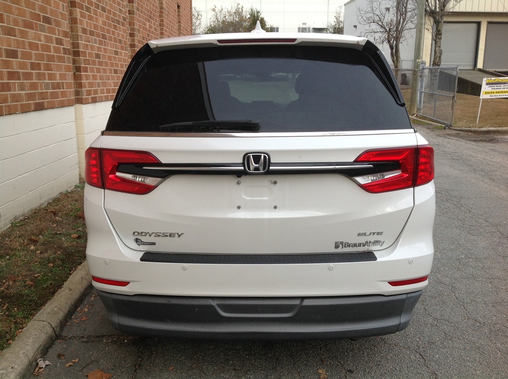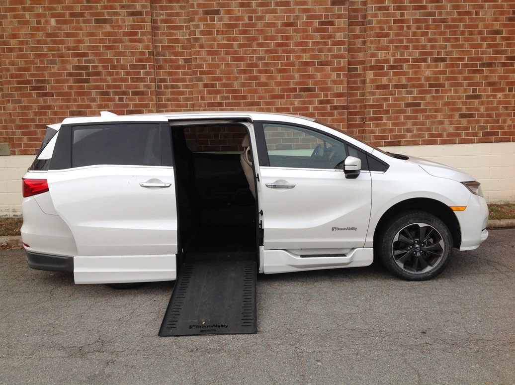 2022 Honda Odyssey Elite, BraunAbility Xi in-floor conversion, rubber flooring, leather trimmed interior, Honda Sensing safety system, vehicle stability assist, anti-lock braking system, electronic brake distribution, tire pressure monitoring system, LED daytime running lights, LATCH child seat anchor system, leather wrapped steering wheel, premium audio system with 11 speakers, display audio with Honda NAV/voice recognition/multi-view rear camera, Blu-ray/DVD rear entertainment system with wireless headphones, TFT meter display, Apple CarPlay/Android auto integration, Satellite radio, HD radio, HondaLink with smart phone integration, Bluetooth HandsFreeLink, USB audio interface, push button start, auto climate control with rear controls, drivers 12-way power seat with memory, heated front seats, passenger 4 way power seat, auto dimming rear-view mirror, 115 volt power outlet, dual power sliding doors, Blind spot information system with cross traffic monitor, power moonroof with tilt feature, power tailgate, auto high beam lights, fog lights, heated power door mirrors with turn indicators, capless fuel filler, LED taillights, rear privacy glass, smart entry system with security system, remote engine start, walk away auto lock. Disability Equipped, Handicap Accessible, Wheelchair accessible, Handicap van, Wheelchair van, Handicap vans, Wheelchair vans