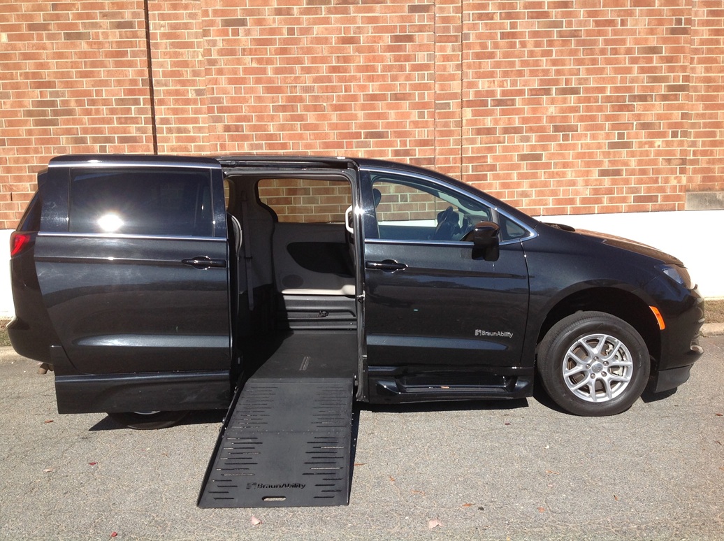 2023 Chrysler Voyager LX, BraunAbility Entervan XT power fold out conversion, premium cloth bucket seats, rubber non skid flooring, ParkView rear back up camera, electronic stability control, electric power steering, electric parking brake, push button start, remote start system, security alarm, LATCH child seat anchor system, Uconnect 5 with 7 inch touch screen display, Google Android auto and Apple Car Play, 8-way power adjustable driver seat, power windows, power sliding doors, power liftgate, air conditioning with rear control, steering wheel mounted audio controls, satellite radio, heated front seats, heated steering wheel, halogen headlamps, keyless entry. Disability Equipped, Handicap Accessible, Wheelchair accessible, Handicap van, Wheelchair van, Handicap vans, Wheelchair vans