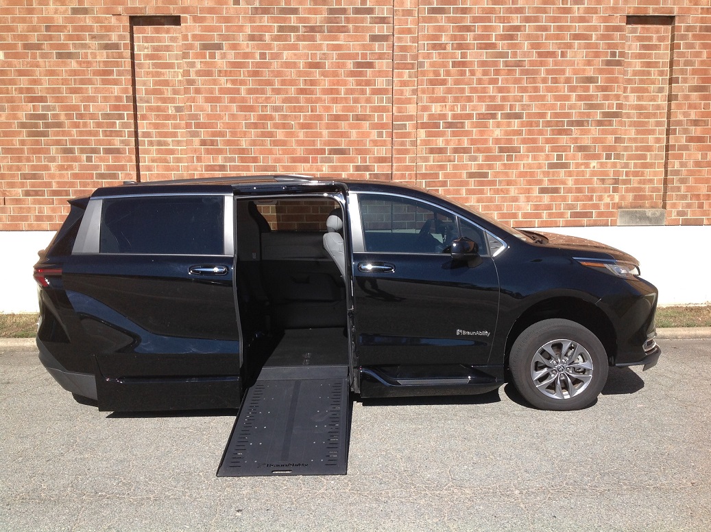 2023 Toyota Sienna XLE Plus HV, BraunAbility RampVan Xi power in-floor conversion, Toyota Safety Sense 2.0, STAR safety system, LATCH child seat anchor system, Blind spot monitor, 5-door smart key with push button start, LED headlights, hands free dual power sliding doors, power liftgate, front and rear parking assist with auto brake, power tilt/slide moonroof, 9″ touchscreen display, HandsFree Bluetooth phone/music, USB media port, 6 USB charge ports, Satellite radio, auto climate control with rear controls, SofTex trimmed seats, heated and power front seats, XLE Plus package including NAV, rubber non-skid flooring. Disability Equipped, Handicap Accessible, Wheelchair accessible, Handicap van, Wheelchair van, Handicap vans, Wheelchair vans