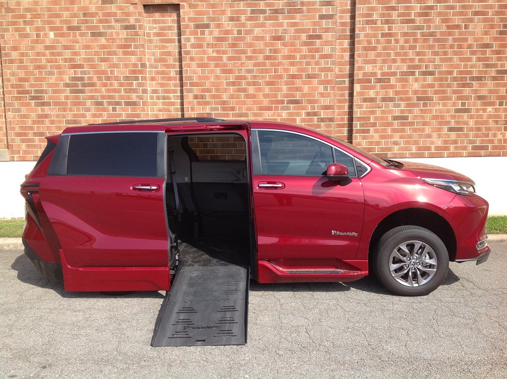 2024 Toyota Sienna HV XLE Plus, BraunAbility RampVan XT power fold out converison, Toyota Safety Sense 2.0, leather seats, heated front seats, power front seats, power windows, power door locks, power liftgate, power sliding doors, rubber non-skid flooring, automatic climate control with rear controls, back up camera, blind spot assist, luggage rack, park assist, push button start, remote start, moonroof, NAV, Apple Car Play, Google Android Auto compatible. Disability Equipped, Handicap Accessible, Wheelchair accessible, Handicap van, Wheelchair van, Handicap vans, Wheelchair vans
