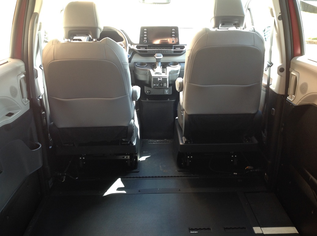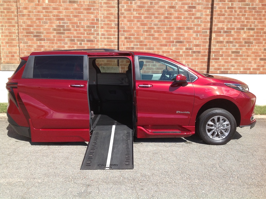 2024 Toyota Sienna XLE Plus HV, BraunAbility RampVan Xi power in-floor conversion, Toyota Safety Sense 2.0, STAR safety system, LATCH child seat anchor system, Blind spot monitor, 5-door smart key with push button start, LED headlights, rubber non-skid flooring, hands free dual power sliding doors, power liftgate, front and rear parking assist with auto brake, power tilt/slide moonroof, Audio Plus 9″ touchscreen display, HandsFree Bluetooth phone/music, Apple CarPlay and Android Auto compatible, USB media port, 6 USB charge ports, Satellite radio, auto climate control with rear controls, SofTex trimmed seats, heated and power front seats, XLE Plus package including NAV, wireless smartphone charging, black roof rails, and 12 JBL speakers. Disability Equipped, Handicap Accessible, Wheelchair accessible, Handicap van, Wheelchair van, Handicap vans, Wheelchair vans