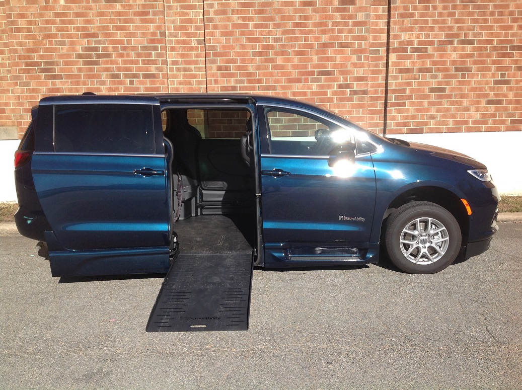 2025 Chrysler Pacifica Select, BraunAbility Entervan XT power fold out conversion, Safety Sphere package with 360 surround-view camera system, ParkSense front and rear park assist, parallel and perpendicular park assist with stop, adaptive cruise control, blind spot and rear cross path detection, lane departure warning plus, full speed forward collision warning plus, pedestrian emergency braking, advances brake assist, ParkView rear back up camera, ParkSense rear park assist with stop, leather seats, rain sensitive windshield wipers, LATCH child seat anchor system, remote start system, theft deterrent system, push button start, heated front seats, heated steering wheel, 8-way power adjustable driver, driver seat memory, air conditioning with rear controls, Uconnect 5 with 10.1 inch touch screen display, satellite radio, Apple Car Play and Google Android auto, Handsfree phone and audio, automatic dimming rear view mirror, universal garage door opener, power sliding door, power windows, LED projector headlamps, LED front fog lamps, automatic headlamps, LED tail lamps. Disability Equipped, Handicap Accessible, Wheelchair accessible, Handicap van, Wheelchair van, Handicap vans, Wheelchair vans